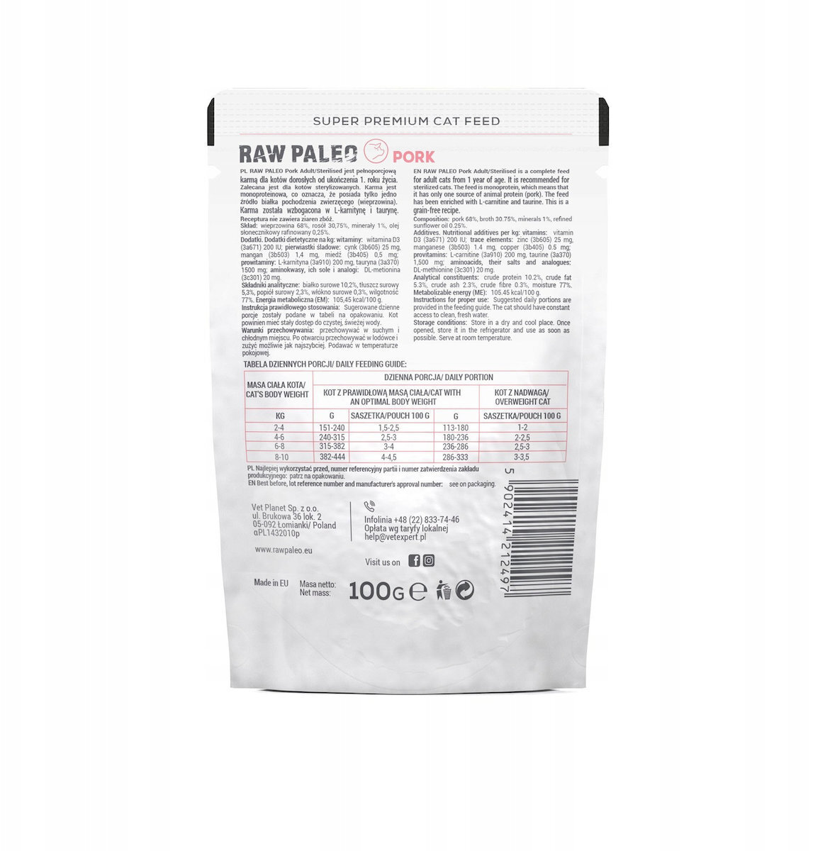 VetExpert Raw Paleo Υγρή Τροφή για Ανήλικες Γάτες με Χοιρινό 100gr