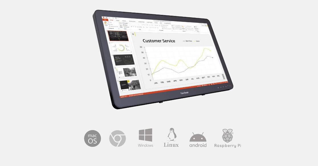 Η οθόνη υποστηρίζει τα κύρια λειτουργικά συστήματα που είναι τα Windows, macOS, Android, Chrome OS, Linux και Raspberry Pi.