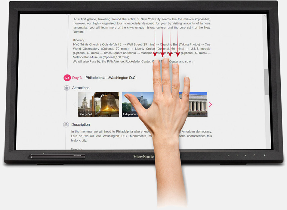 Μια υπέρυθρη οθόνη αφής που μπορεί να ανιχνεύσει έως και 10 σημεία επαφής στα Windows σε σύγκριση με τις οπτικές οθόνες αφής, το TD2223 προσφέρει μια διαισθητική εμπειρία πολλαπλής αφής με κάθε πάτημα, τσίμπημα και σάρωση.