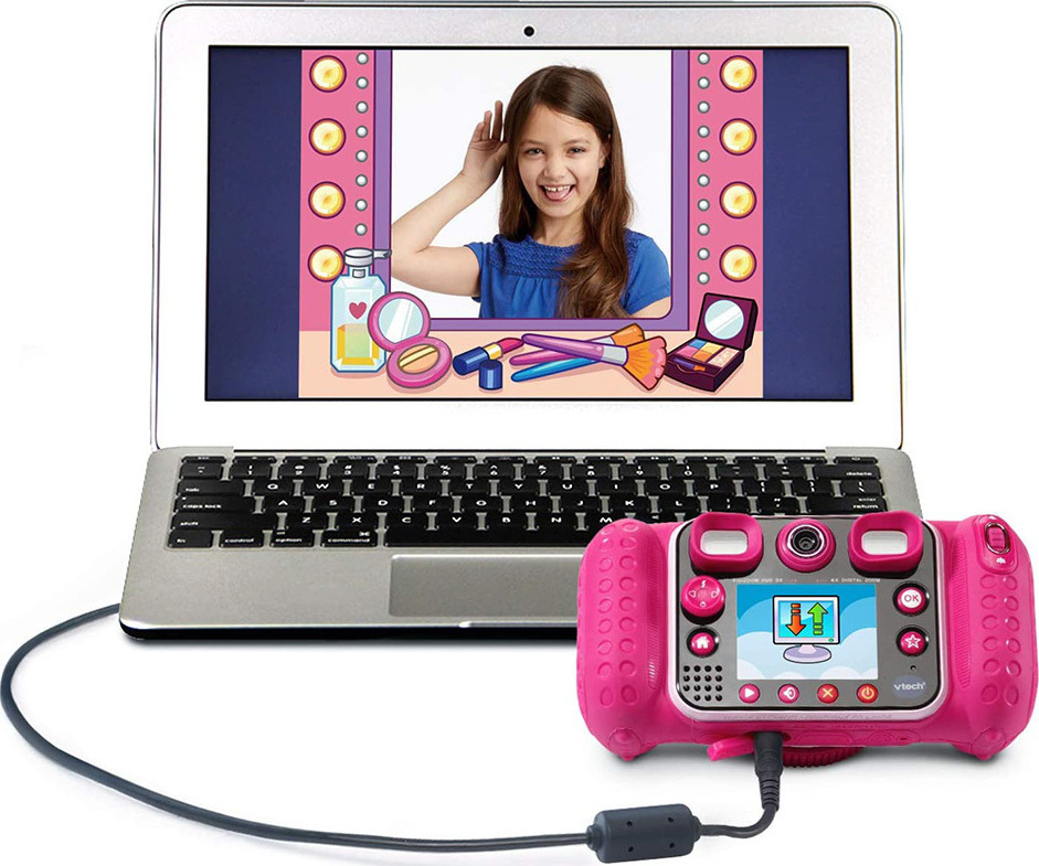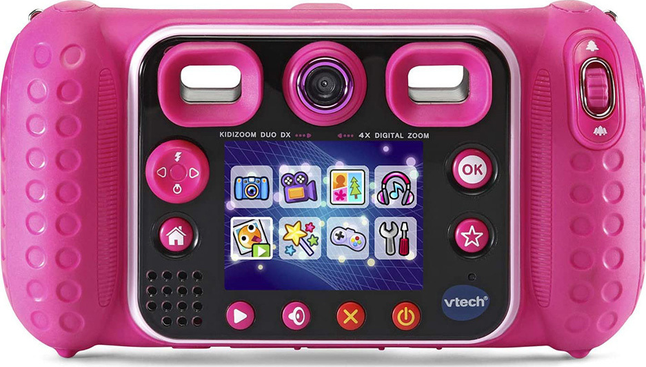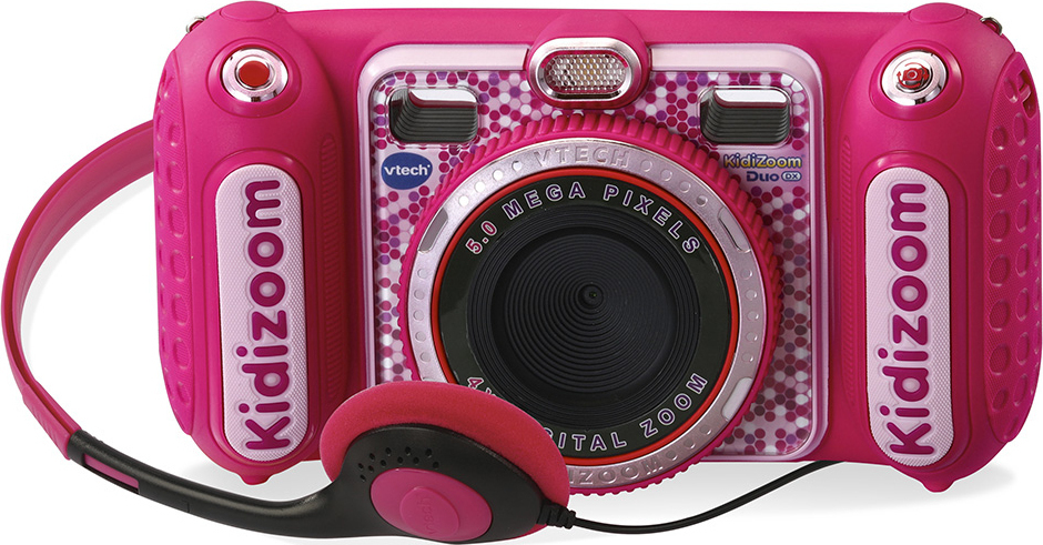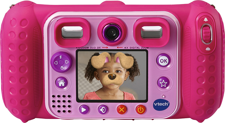 Η φωτογραφική μηχανή Kidizoom Duo DX από τη Vtech είναι εξοπλισμένη με διπλή κάμερα & εσωτερική μνήμη όπου μπορούν να αποθηκευτούν περίπου 140 φωτογραφίες. Διαθέτει περισσότερα από 70 διασκεδαστικά βίντεο εφέ και φωτογραφίες & θύρα υποδοχής κάρτας microSD για επέκταση μνήμης. Μπροστινή κάμερα 5 megapixel, πίσω κάμερα selfie 2 megapixel και ΜΡ3 player για να ακούς μουσική. Με δυνατότητα ψηφιακού zoom 4x, ηχογράφηση φωνής με δυνατότητα αλλαγής φωνής μέσω εφέ και εφέ κινουμένου σχεδίου στην οθόνη με το κούνημα της κάμερας!