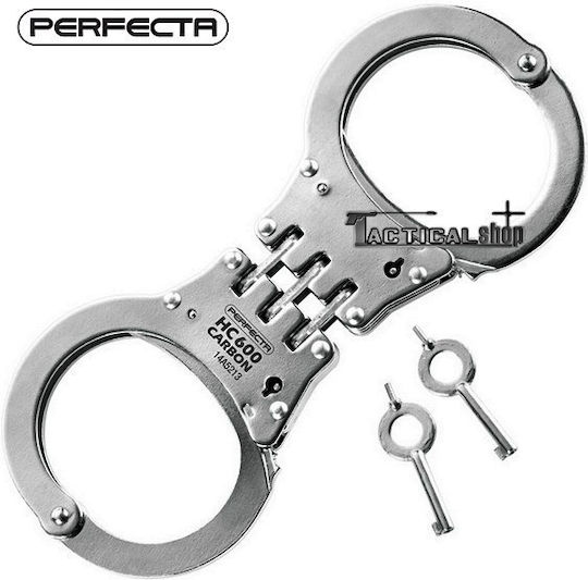 Οι χειροπέδες HC 600 από ανθρακούχο χάλυβα με επινικελωμένο χάλυβα με σύστημα διπλής κλειδαριάς από την Perfecta είναι εφοδιασμένες με συνδέσμους αρμού, ως προστασία έναντι υπερβολικής σύσφιξης των χειροπέδων.