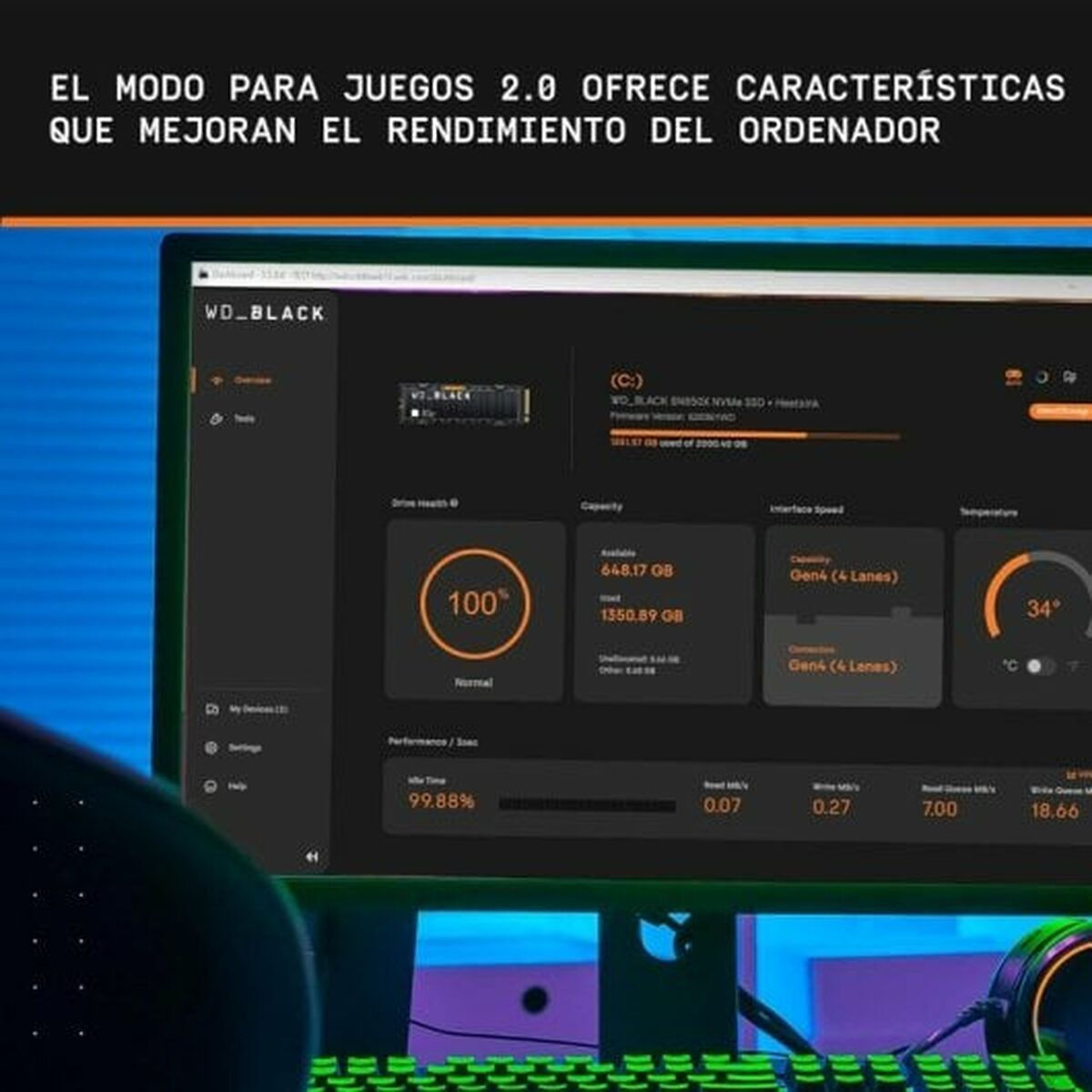 Ο πίνακας ελέγχου WD_BLACK Dashboard παρακολουθεί την κατάσταση της μονάδας δίσκου σας, τον έλεγχο του φωτισμού RGB και αποκλειστικά στο SN850X, τη λειτουργία Game Mode 2.0 (μόνο για Windows).