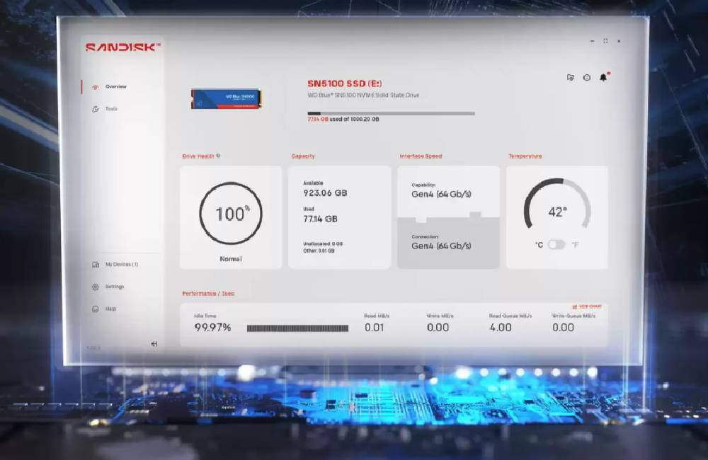Παρακολούθησε την απόδοση του SSD σου και έλεγξε για ενημερώσεις με την εφαρμογή SANDISK Dashboard που μπορείς να κατεβάσεις.