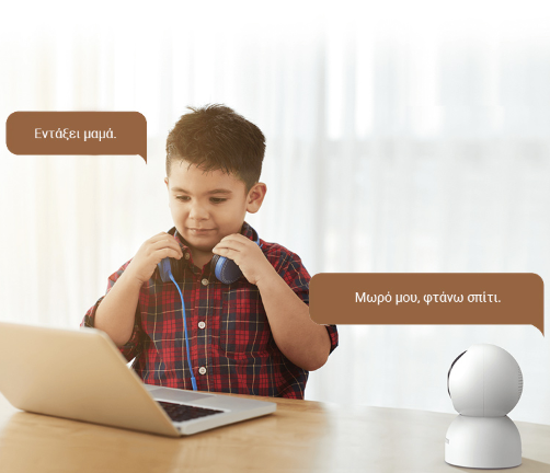Ο σχεδιασμός των ηχείων μεγάλης διαμέτρου βελτιώνει την απόδοση του ήχου και ενισχύει την ποιότητα του. Επιπλέον, η κάμερα υποστηρίζει αμφίδρομη φωνητική επικοινωνία σε πραγματικό χρόνο και μπορεί να λαμβάνει ήχο σε απόσταση έως 5 μέτρων, για πιο ομαλές συνομιλίες. Παράλληλα, η έξυπνη μείωση θορύβου, για το μικρόφωνο, παρέχει ακόμα καθαρότερες συνομιλίες.