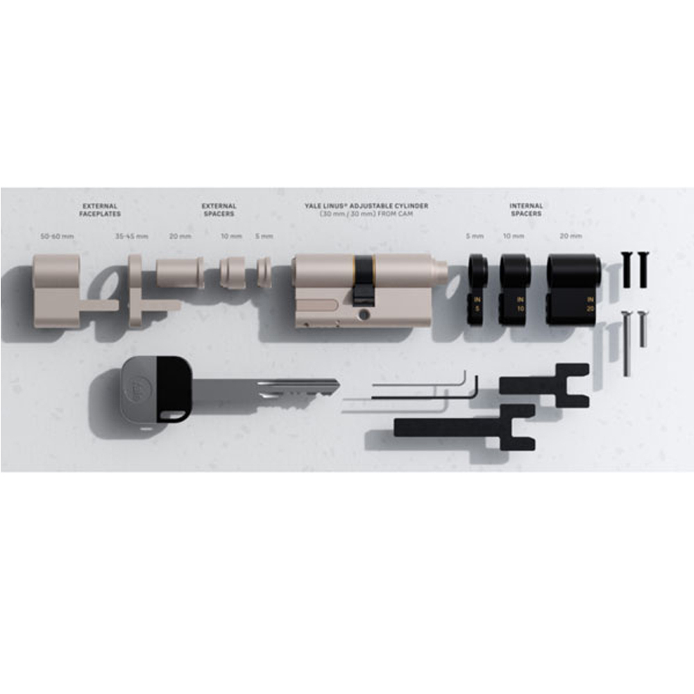 Ο ρυθμιζόμενος κύλινδρος Yale Linus θα λειτουργήσει ιδανικά με την έξυπνη κλειδαριά Yale Linus. Δεν χρειάζεται να μετρήσετε καμιά διάσταση στην πόρτας, καθώς ο κύλινδρος έχει σχεδιαστεί έτσι ώστε να ρυθμίζετε η διάστασή του και να ταιριάζει σε όλες τις πόρτες.