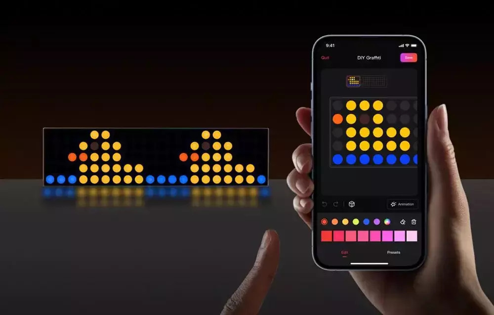 Ο πίνακας χρησιμοποιεί διευθυνσιοδοτούμενα LED RGB και προσφέρει περισσότερα από 20 προκαθορισμένα εφέ και τη δυνατότητα δημιουργίας δικών σας συνθέσεων. Τα χρώματα μεταβαίνουν απρόσκοπτα και ανταποκρίνονται στον ήχο ή εμφανίζουν το ρολόι. Η λειτουργία Music Flow επιτρέπει τον συγχρονισμό με μουσική από το τηλέφωνο ή τον υπολογιστή σας.