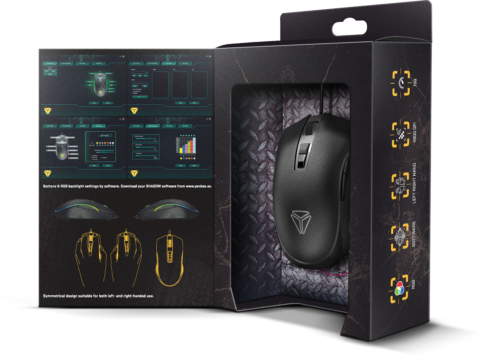 YENKEE YMS 3027BK SHADOW Gaming Ποντίκι με προγραμματιζόμενα πλήκτρα και RGB φωτισμό.