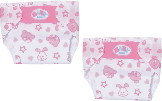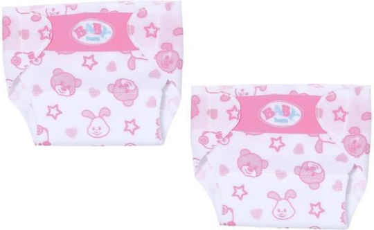 Χαριτωμένες πάνες για την BABY born σας. Το μαλακό λευκό-ροζ υλικό εξασφαλίζει άνεση, ενώ οι δύο επενδύσεις με αυτοκόλλητο διασφαλίζουν ότι η πάνα δεν θα μετακινηθεί ανεξαρτήτως των περιστάσεων. Με τους γοητευτικούς ζωγραφιστούς σχεδιασμούς σε ροζ αστέρια, καρδιές και χαρούμενα προσωπάκια του Αρκούδου Μπρούνο, του Λαγού Μπέννο, του Σκύλου Μπέλο και της Πάπιας Μπέρτης, η κούκλα σας δεν θα ντρέπεται να δείξει την πάνα της δημόσια.