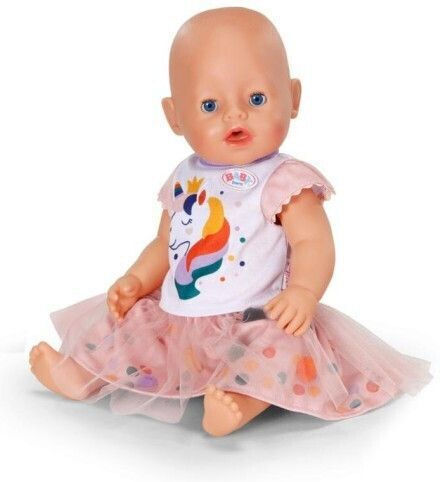 Ένα φανταστικό σετ ένδυσης σε σχέδιο Μονόκερου και φούστα από τούλι με διασκεδαστικές λεπτομέρειες κατάλληλο για τις κούκλες Baby born® 43cm.