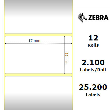 Zebra Z-Perform 1000T 2100 Αυτοκόλλητες Ετικέτες σε Ρολό για Εκτυπωτή Ετικετών 57x32mm