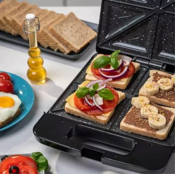 Ο τοστιέρα Zelmer ZSM7400 είναι μια λειτουργική και βολική συσκευή που θα εξυπηρετήσει κάθε κουζίνα. Με ισχύ 1400 W, ψήνει γρήγορα και ομοιόμορφα τα τοστάκια σας. Η αξιόπιστη μάρκα Zelmer διασφαλίζει υψηλή ποιότητα και ανθεκτική κατασκευή. Η τοστιέρα δεν διαθέτει εναλλασσόμενες πλάκες, διευκολύνοντας τη χρήση της. Οι πλάκες σχήματος 8 τριγώνων είναι επικαλυμμένες με ανθεκτική επικάλυψη, έτσι ώστε τα τοστάκια να μην κολλάνε και να απομακρύνονται εύκολα. Κατασκευασμένη από πλαστικό, η τοστιέρα είναι ελαφριά και εύκολη στην αποθήκευση. Η αντιολισθητική βάση εξασφαλίζει σταθερότητα και ασφάλεια κατά την χρήση. Πρόσθετες δυνατότητες, όπως η λυχνία ελέγχου, η δυνατότητα αποθήκευσης σε όρθια θέση και η λαβή που δεν θερμαίνεται, κάνουν τη χρήση της τοστιέρας ακόμα πιο άνετη. Δεν υπάρχει δυνατότητα ρύθμισης ύψους του καπάκιού ή θερμοκρασίας, ωστόσο, λόγω των διαστάσεων συσκευασίας 29 x 13 x 35 cm και του βάρους 1,50 kg, η τοστιέρα καταλαμβάνει λίγο χώρο στην κουζίνα και είναι εύκολη στην αποθήκευση. Ιδανική για την ετοιμασία νόστιμων και τραγανούς τοστάκιων γρήγορα και απλά.