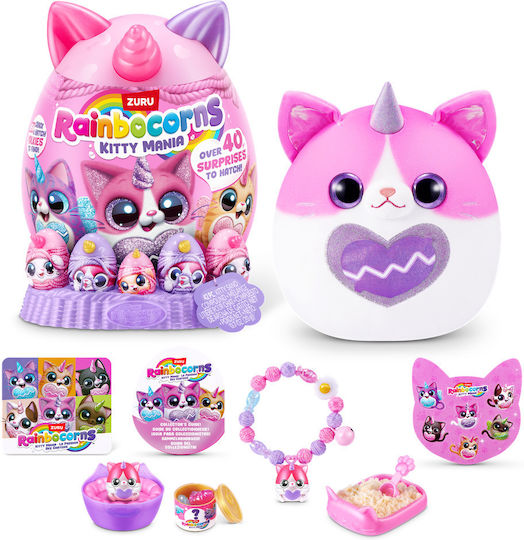 Γνωρίστε τη Rainbocorns Kitty Mania γατούλα. Ανοίξτε το αυγό για να αποκαλύψετε ένα χνουδωτό λούτρινο και πάνω από 40 εκπλήξεις. Κάθε Rainbocorns Kitty Mania περιλαμβάνει έναν ειδικό σύντροφο Boo-Boocorn, προσθέτοντας περισσότερη διασκέδαση στην περιπέτεια.